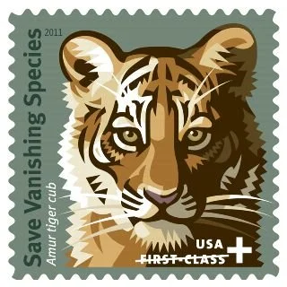 The stamp features a beautiful illustration of an Amur tiger cub by artist Nancy Stahl. Derry Noyes served as the art director.